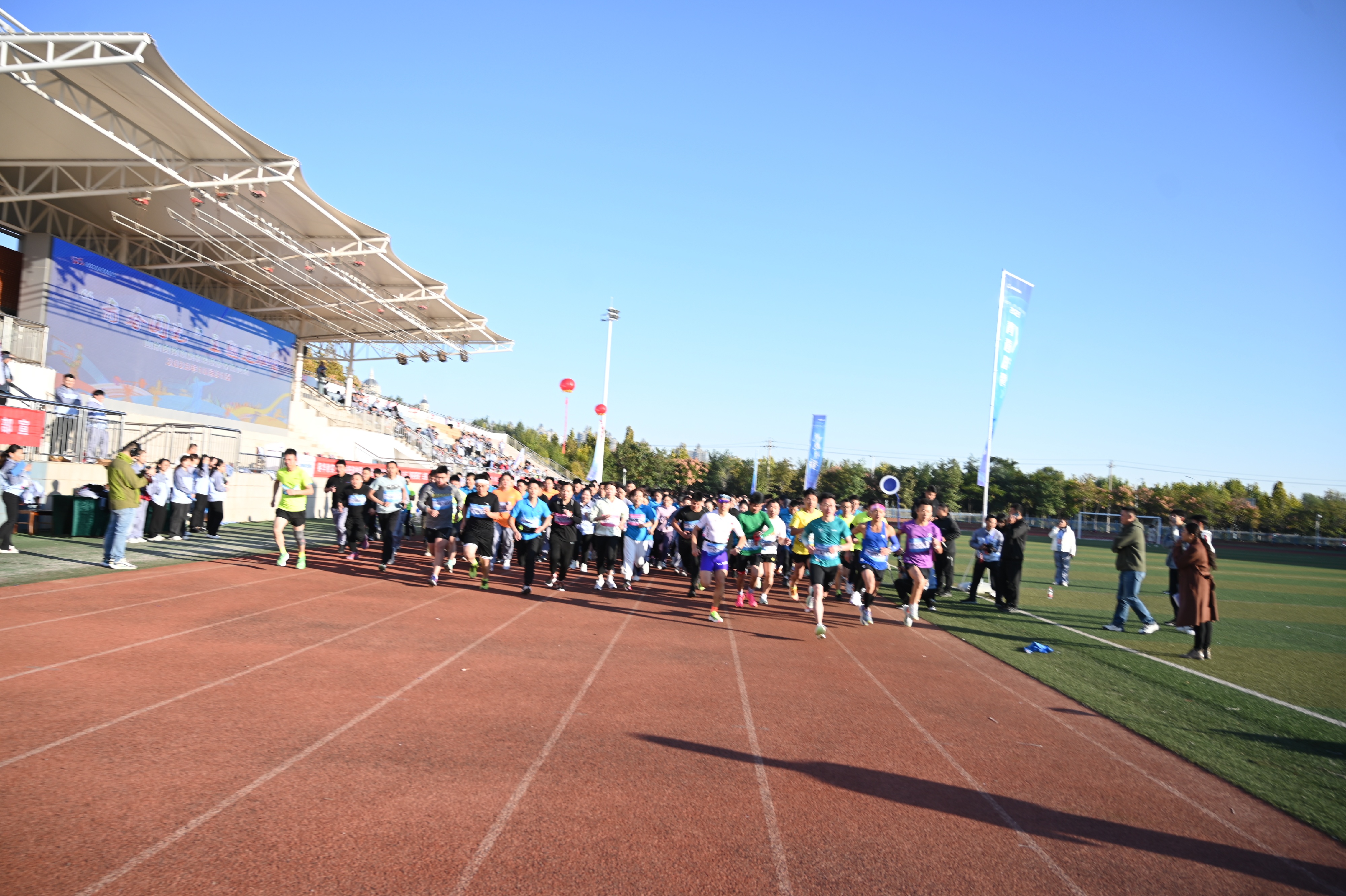 赛场内,运动员们挥洒汗水,拼搏向前,成为这个秋天最靓丽的一道风景。赛场外,线上直播观众超过8000人,喝彩次数超过3.3万次。最终综合积分评比,“天生我材”队荣获最佳团队奖,“双A鼎立”队荣获优秀组织奖。